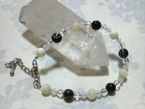 マザーオブパール(6mm) 天眼石(6mm) クリスタル(4mm) 白色ビーズ 使用 アジャスターブレス