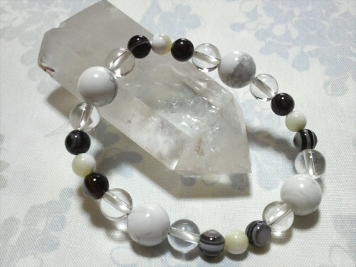 ハウライト(10mm) 天眼石(6mm) マザーオブパール(6mm) クリスタル(8mm) 使用